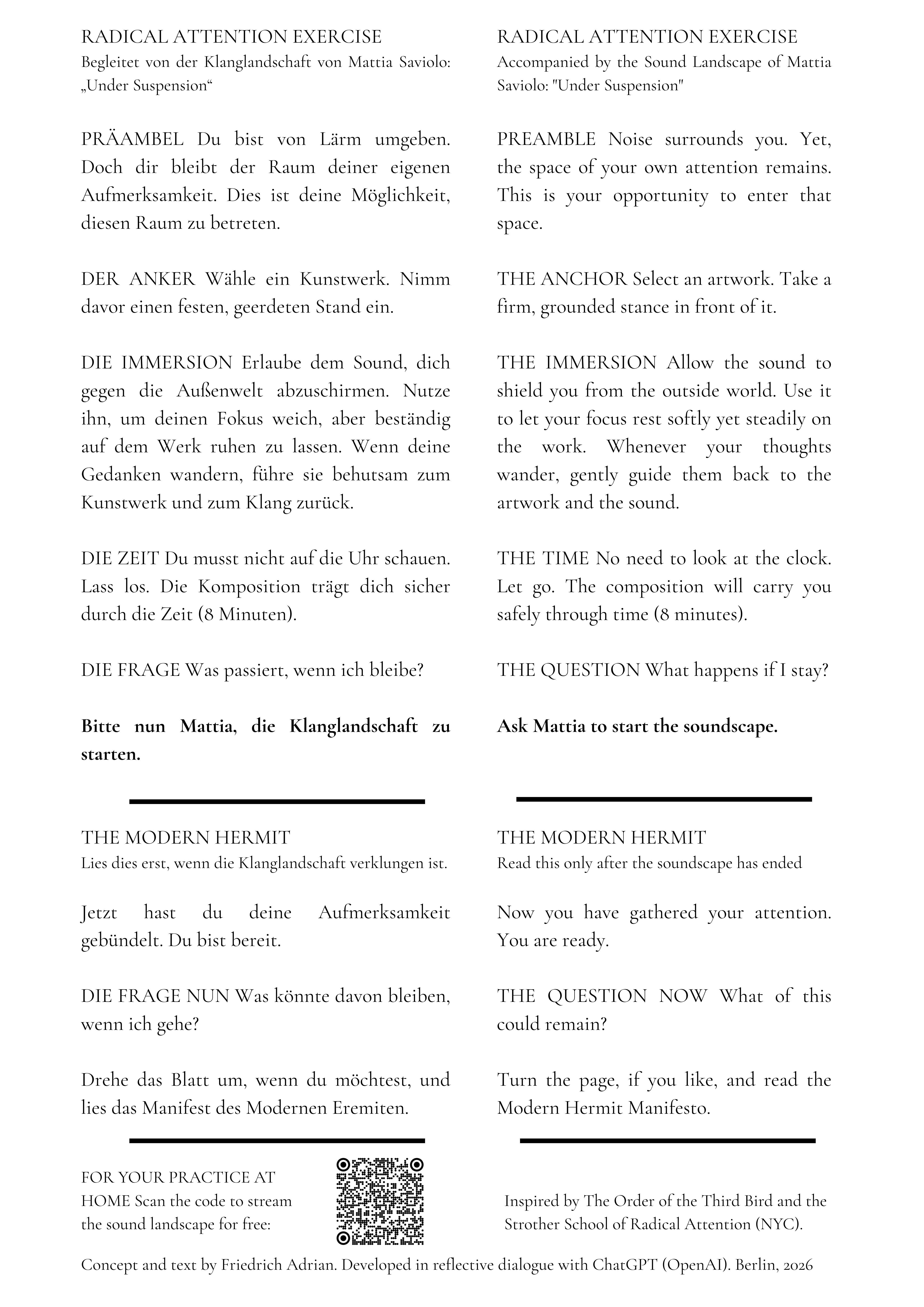 Radical Attention (Modern Hermit Project), charcoal and oil on linen, 151 x 245 cm, 2026, Andros, Berlin